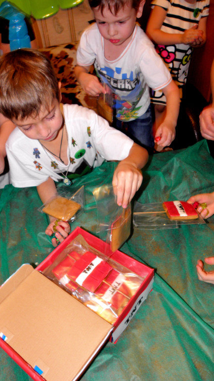 Все наигрались и пришло время для последнего конкурса квеста,вышла накладка с фотиком и к сожалению фоток мало,только как уже нашли клад) Для сокровищ я обклеила обувную коробку в виде динамита из игры,положила туда мешок с камушками разноцветными (куплены в фикспрайсе),медальки монетки золотые и пряники на палочке в виде динамита,которые испекла нам Эля Эля ツ за что спасибо ей большое,вкусные)))) Развесила по квартире подсказки,задавала им загадки (кстати про Эндермена сама сочинила,про Крипера нашла в инете,немного исправила под себя),клад нашли и еле разделила между всеми поровну сокровища)))))))