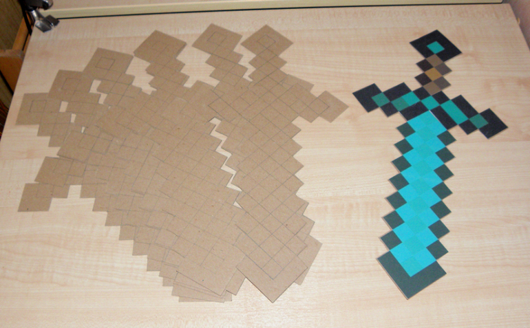 Без чего не обойтись в мире Майнкрафт?Ну конечно же без оружия! Будет задание у нас творческое. Смотрите, что я подготовила для вас! Это мечи, только они пока не похожи на настоящие. Ну-ка возьмите всё в свои руки и поработайте над этим.
