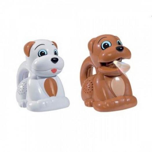 На годик дочке подруги дарила подобного плана фонарик.При нажатии лает и светит)