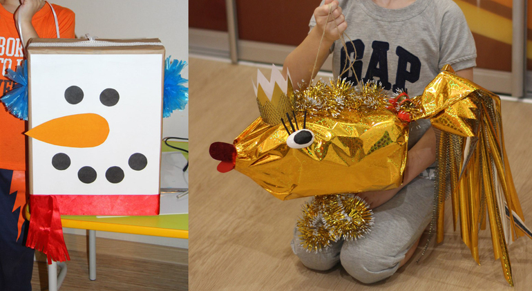 Еще покажу наши поделки в сад - у нас всегда нужны поделки на городскую ёлку, и маски, вот такие мы делали в прошлом и этом году