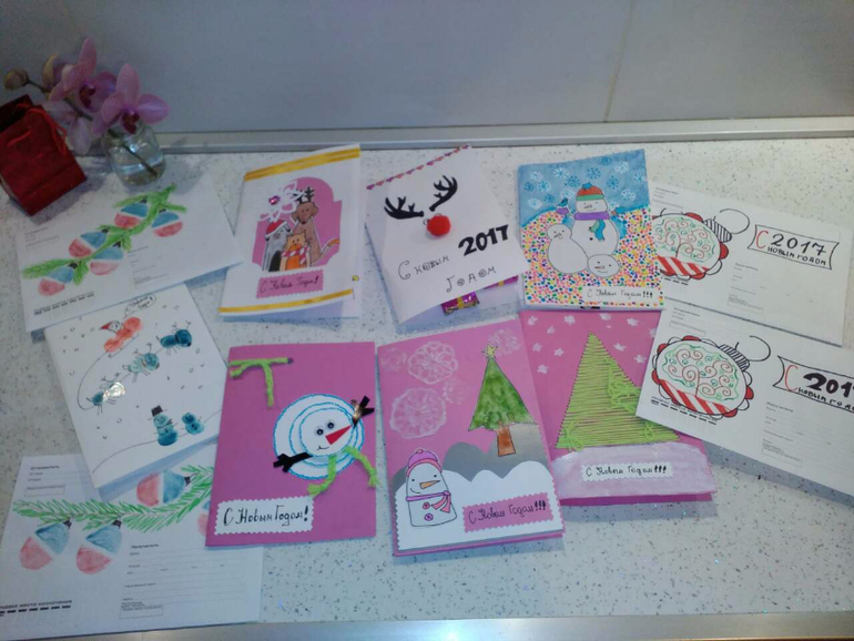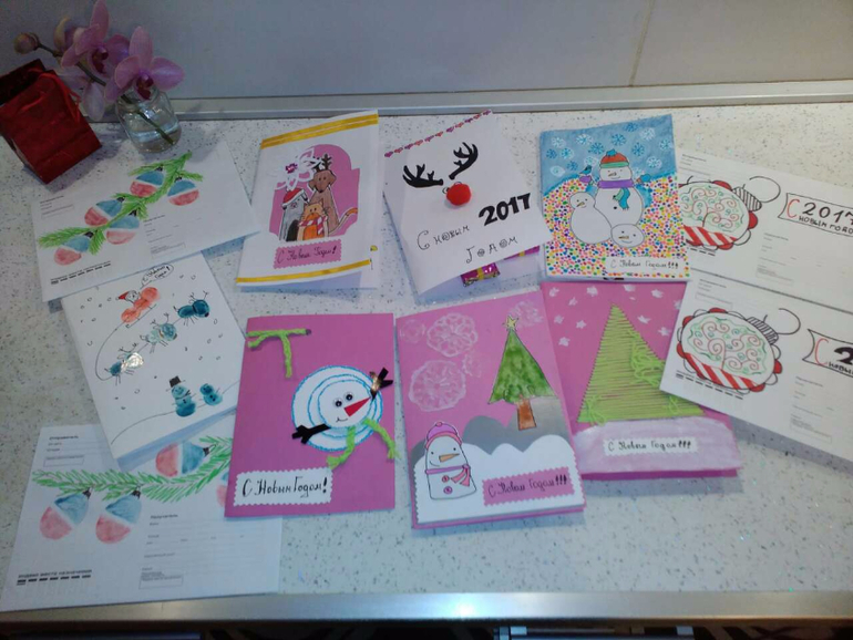 Новый ГодЗакончили мы наконец делать открытки!! Получила я от этого процесса огромное удовольствие)) Помогала мне старшая дочка Софья делать в основном, но и Ярослава свой вклад сделала, как могла... где надо не мешала, а где надо и наклейки наклеивала!! Все идеи взяты на просторах интернета и местами доработаны. Надеюсь получателям понравятся!!