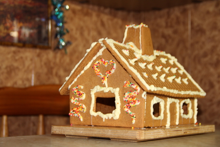 7го, конечно, Рождество. Вове пришлось метнуться на работу. А я с детьми съездила в храм. Дома готовили вкусняшки, пели рождественские песни и зажигали свечи. Я сделал пряничный домик! Секрет в том, что заготовки были уже готовые. Мне их подарили ))) Осталось только "склеить" и украсить.