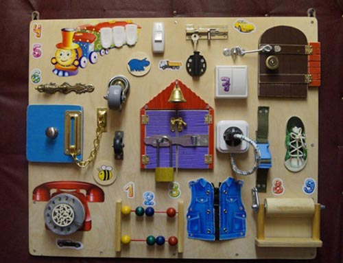 Бизиборд. Нам год был 4 февраля, и ребенку эта развивашка очень интересна. Мы у знакомых играли))) теперь хотим приобрести или папа своими руками смастерит. Вот приблизительно такая доска у знакомых, они в Минске заказывали