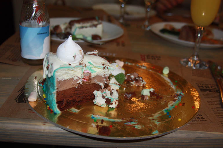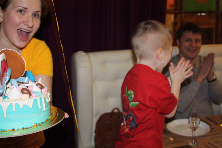 Мы первый раз такой заказали, Мирке красный бархат со сливками и ягодами брала, а Свят сказал шоколадный торт, как у папы свина из пеппы :)))) попробовали этот и не прогадали. Вкусно. Мы первый раз в игровой, Получилось очень весело :)))