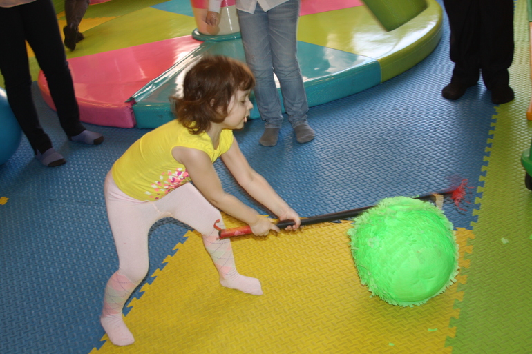 А теперь просто фото и немного про сам праздник! Аниматором была я, в этом году решили пока без постороннего человека, все-таки рановато деткам, мои конкурсы прошли на ура, а пиньята вообще бурю эмоций произвела (прибежали дети со своего химического шоу нам помогать:))))) и разбирать конфеты). В этом году я решила не делать цифру из гофробумаги и органичились цифрой-шаром и не зря я отдала предпочтение пиньяте!!!!
