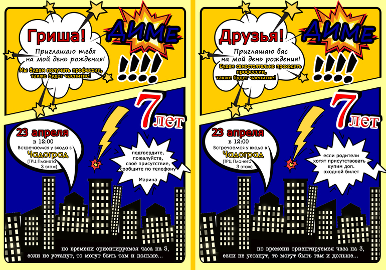 Приглашения - с них начинается наш праздник: было 2 типа приглашений - для детей из садика и для друзей