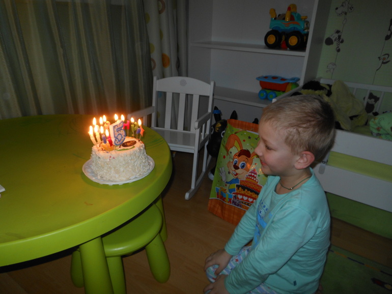 Доброе утро 13го апреля! Мы заходим в комнату к Максиму с тортом в руках, свечи горят, а мы тихонечко поем "С днем рожденья тебя.."