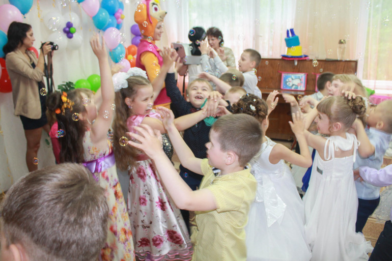 Затем она была отправлена с папой домой. А у нас была вторая часть мероприятия-чаепитие и развлекательные мероприятия с аниматорами.