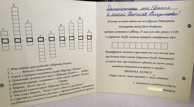Приглашение на ДР в стиле "Шерлок Холмс"
