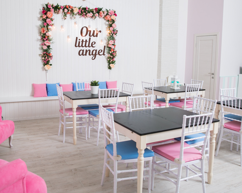 Мы открылись в 2017 году. Интерьер зала выполнен в нежных пастельных тонах, подходящих как для мальчиков, так и для девочек, а вся мебель приспособлена для наших маленьких гостей. Зал вместимостью до 16 человек подойдет для проведения различных торжеств: от крещения и дня рождения до семейного чаепития. Ко всему прочему, у нас есть детская игровая зона с мягкими и развивающими игрушками.