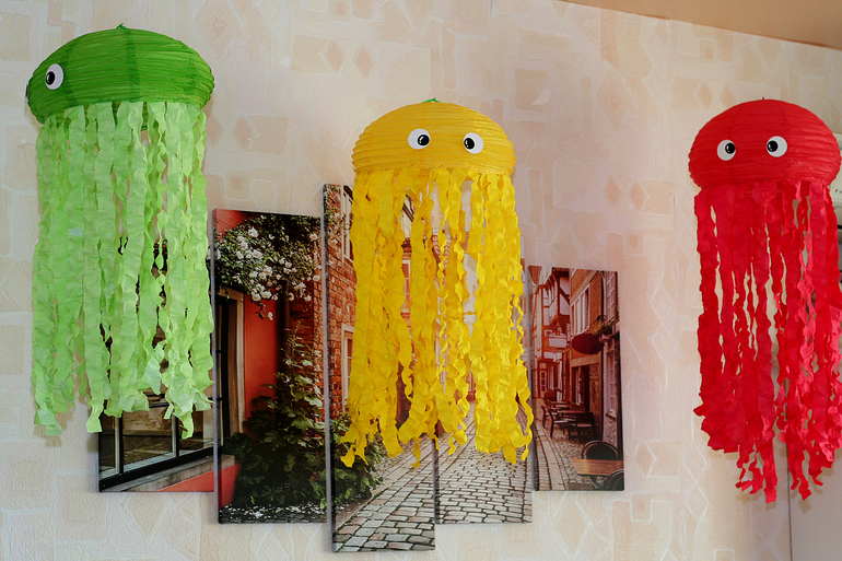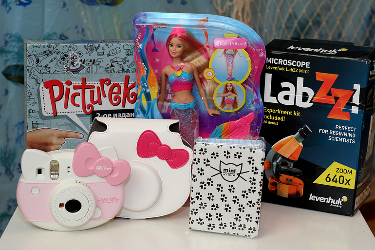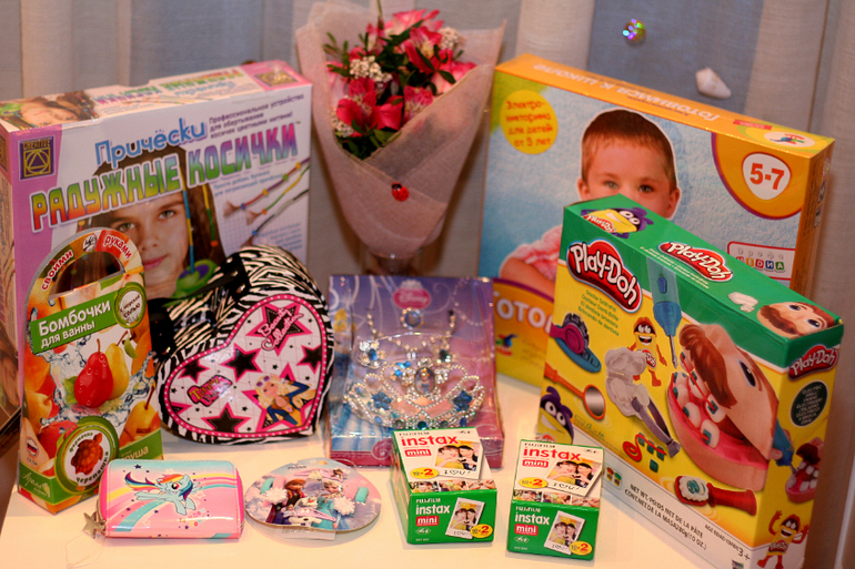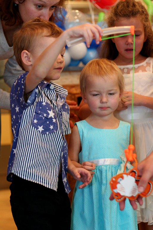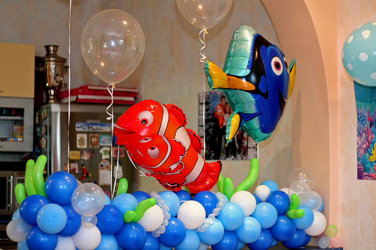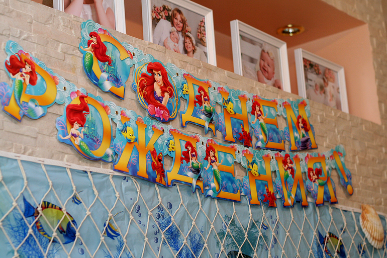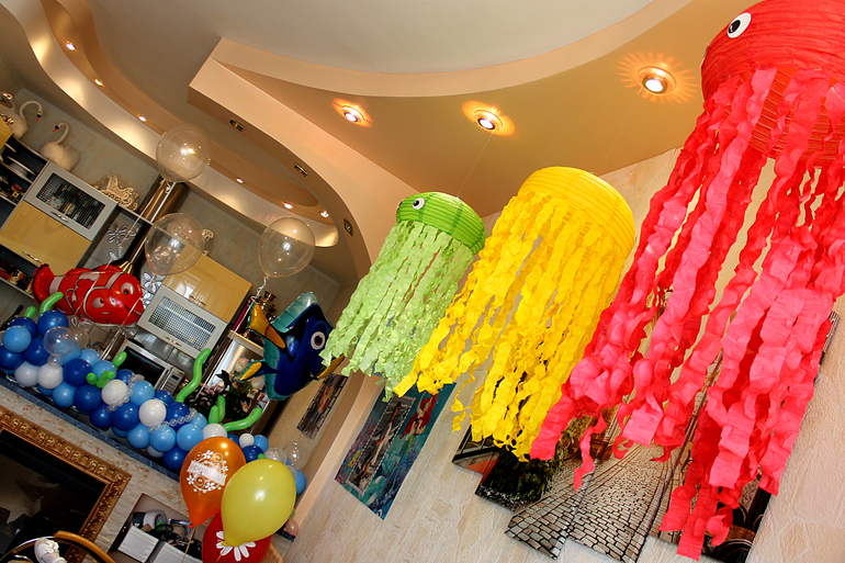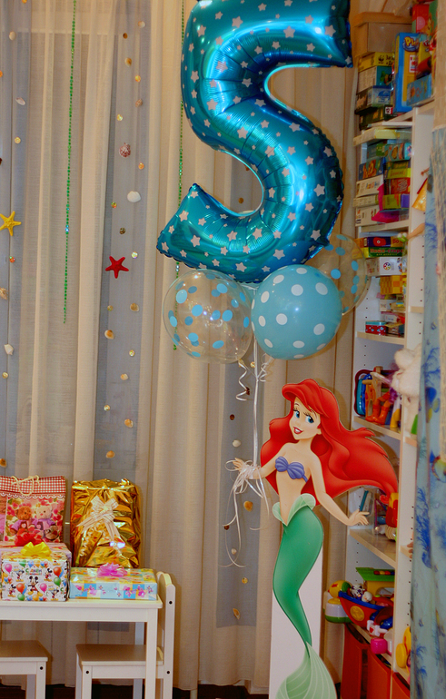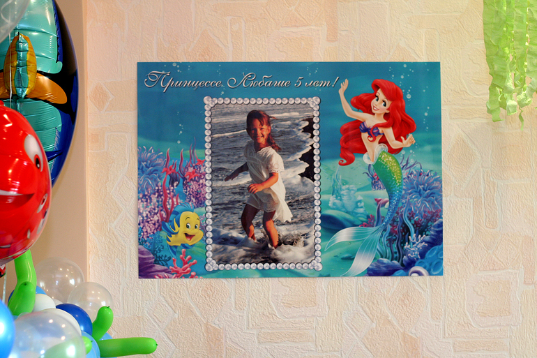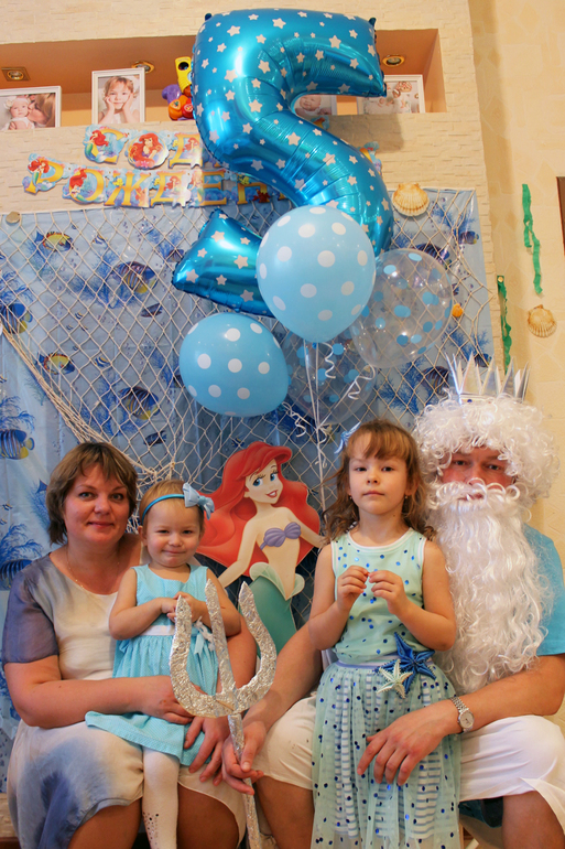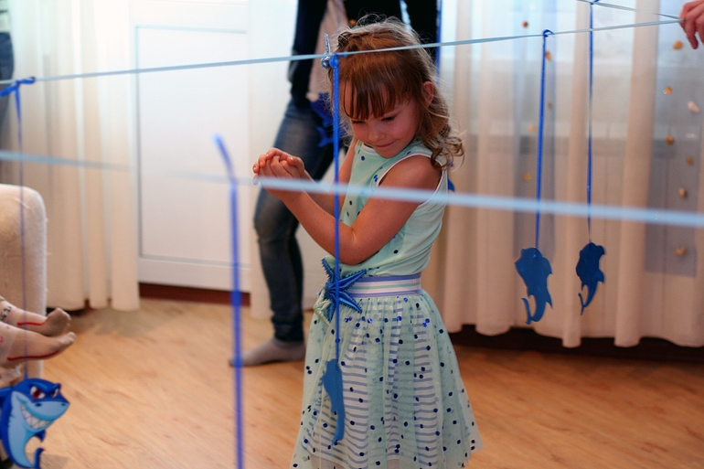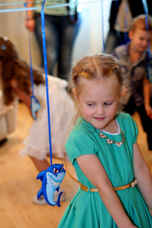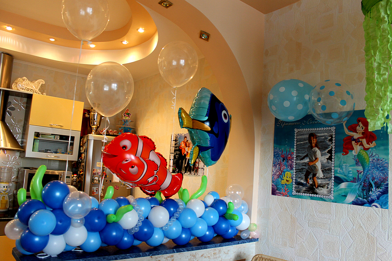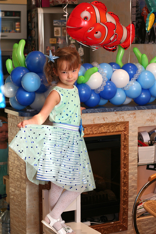И вот он, долгожданный день настал! Моя маленькая рыбка вплыла в зал и онемела, как и полагается рыбам, от всего великолепия подводного царства. Быстренько попозировала на камеру и побежала распаковывать подарки.