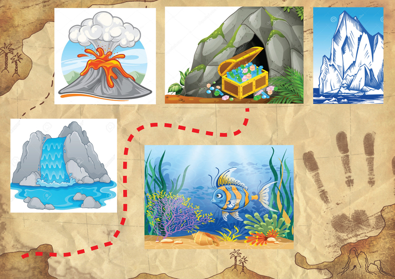 Догадались, где карта? Между водопадом (раковиной), огненым вулканом (варочной панелью) и ледяной горой (холодильником) - в пещере (духовом шкафу)!