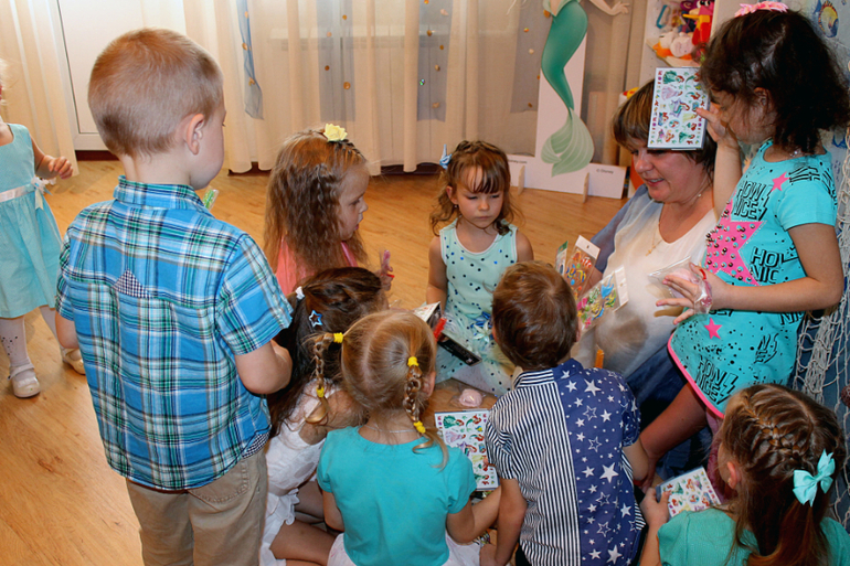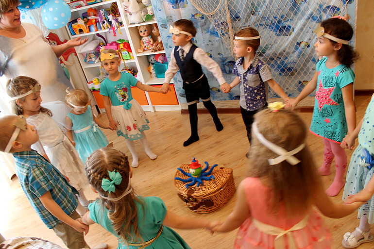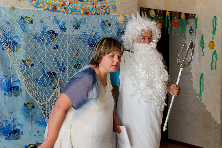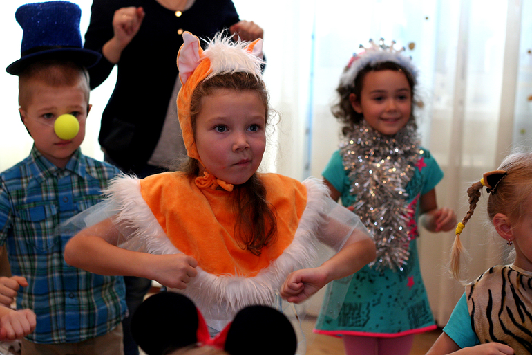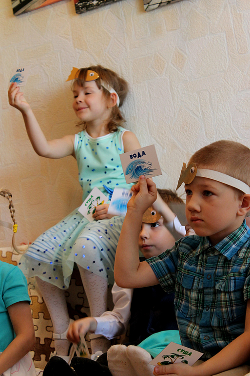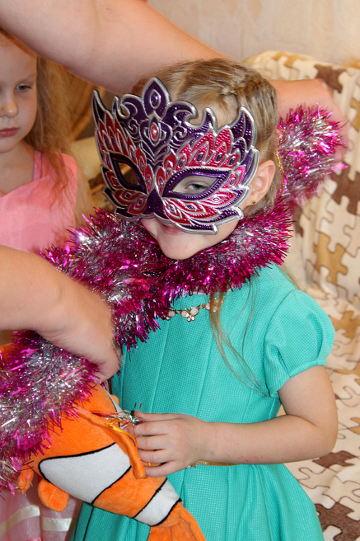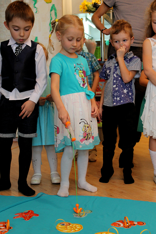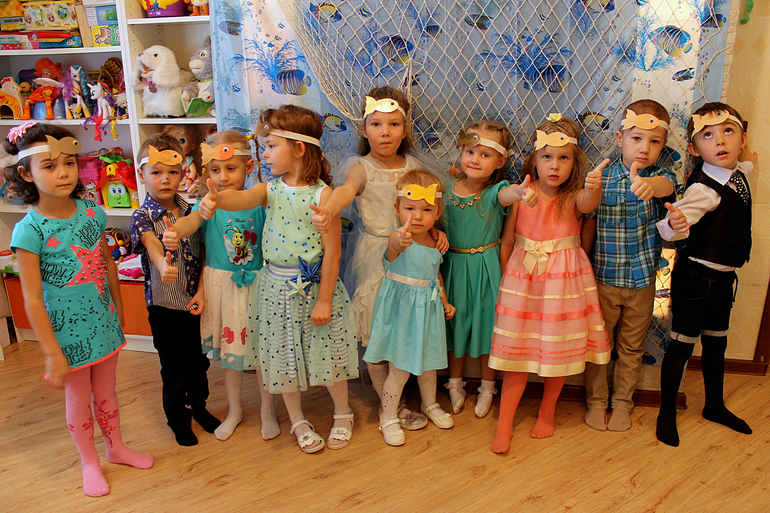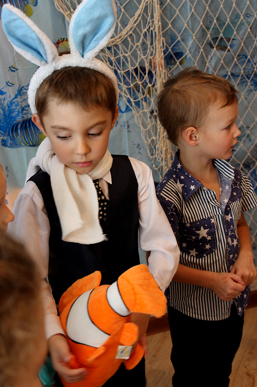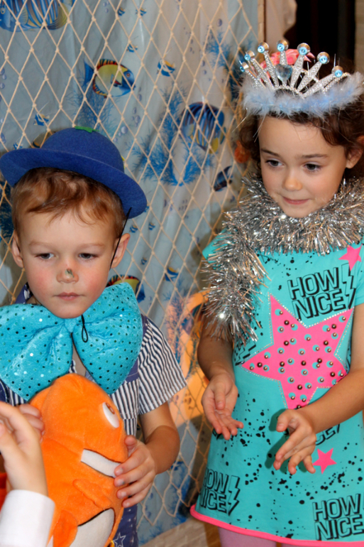 Дальше все встали в круг и под музыку передавали рыбку. На ком музыка останавливалась, тот одевал карнавальный костюм.