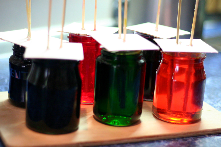 Кристаллы мы с дочками специально начали выращивать за 2 недели до торжества. Захватывающий процесс, скажу я вам! С утра моих девочек почти не приходилось будить, т.к. едва открыв глаза, они неслись на кухню, сшибая все на своем пути, чтобы убедиться, что кристаллы со вчерашнего дня еще подросли!!!