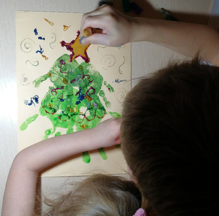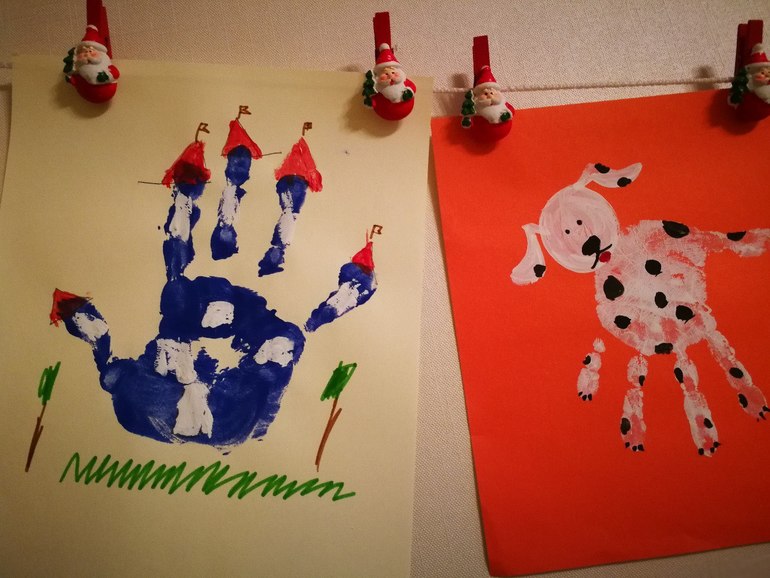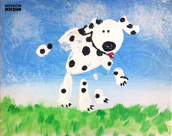 4. Традиционные картинки с отпечатками пальцев (собачка для дочки и замок для сына)