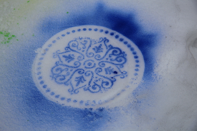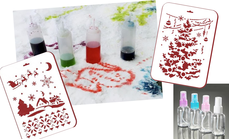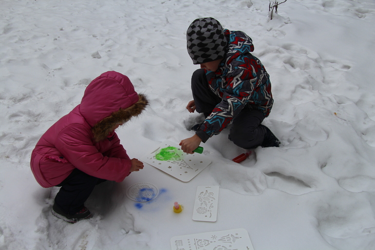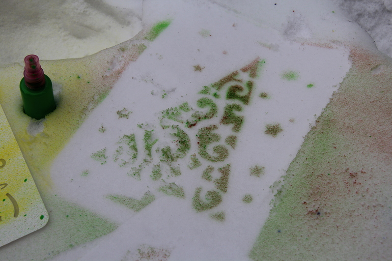 рисовать на снегу таким способом мне не понравилось - краской можно замараться, а аккуратности еще у нас нет... и не очень удобно...