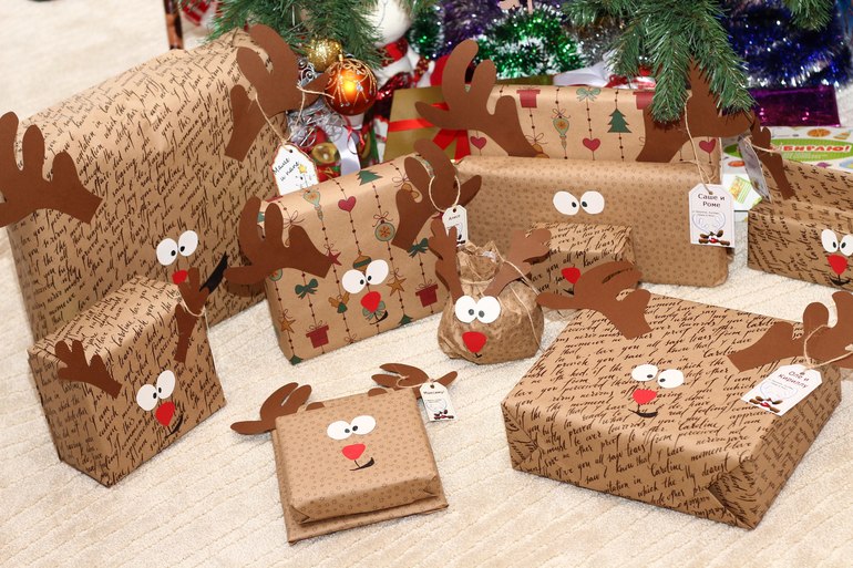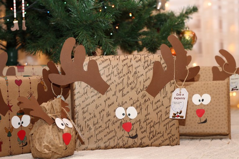 5. Упакуем подарки - хочу привлечь детей и сделать кучу оленей (уже упаковала, скоро будем с детьми рога клеить...)