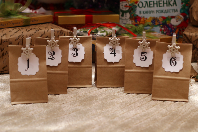 На окне за неделю появятся крафт пакетики с обратным отсчетом, внутри житель и сладость.