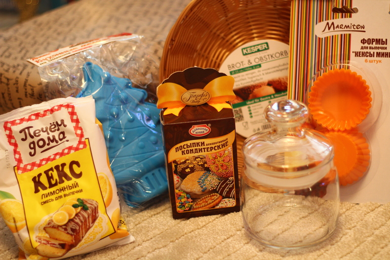 Ну а еще я придумала такой сборный подарок: купить баночку красивую для продуктов, пересыпать туда смесь для кексов - пеку такую - легко и вкусно, сделать рецепт красиво оформленный, купить формочки для кексов, красивые посыпки, возможно глазурь -видела в пакетиках, и красиво это всё упаковать! Думаю будет отлично!