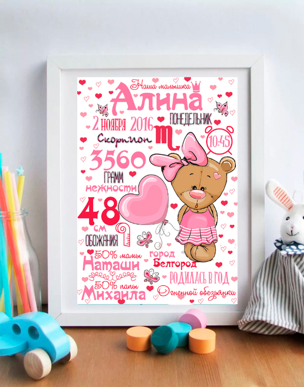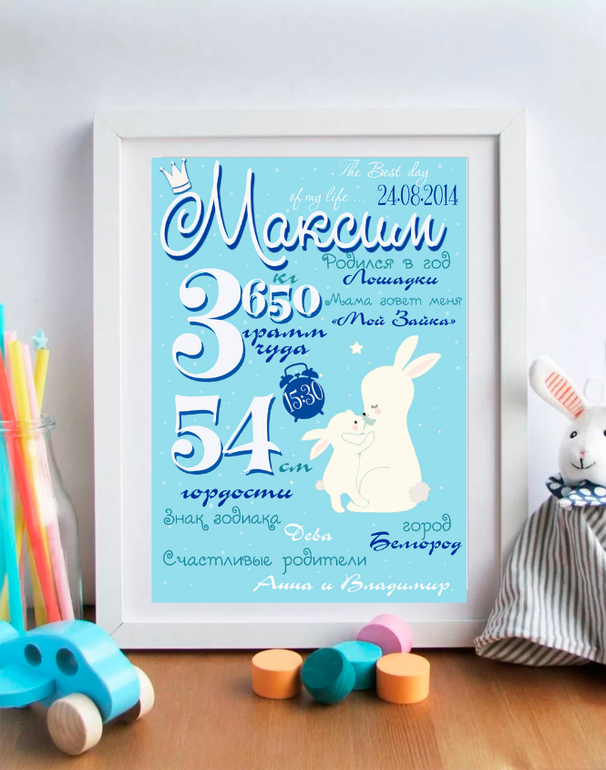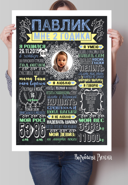 День рождения ДетскийУважаемые мамы, изготавливаю метрики, постеры, новогодние календари для Вас и ваших деток! Метрика станет замечательным подарком на день рождение малыша, а также прекрасным украшением интерьера. Группа в контакте проводится розыгрыш календарей