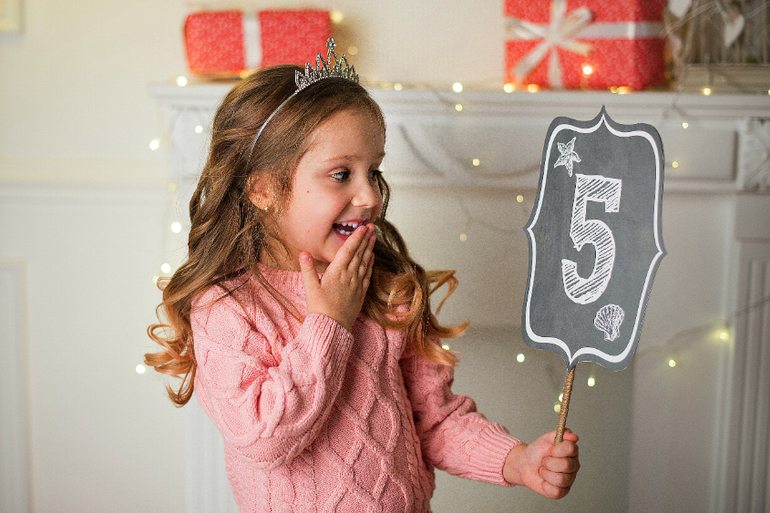 В ноябре у нас была новогодняя фотосессия и мы попросили фотографа сделать несколько фотографий с табличкой 5.