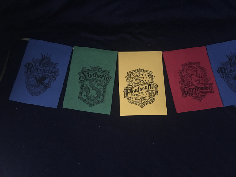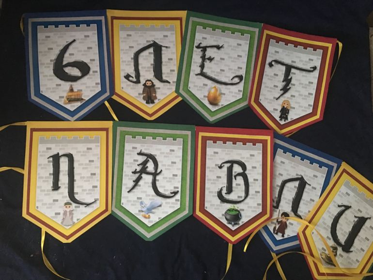 Гирлянду делала по шаблону ДР в рыцарарском стиле когда Павлику 3 года исполнялось, только фоны заменила на цвета факультетов Хогвартса. Башенки замка к Хогвартсу очень хорошо подошли.