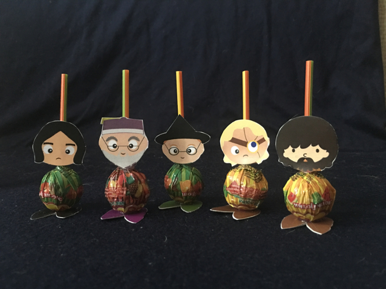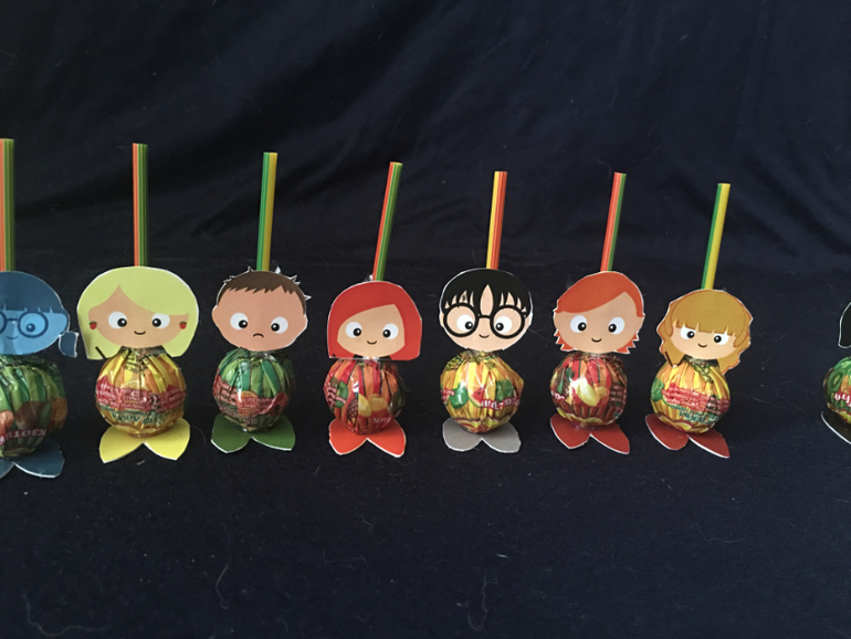И уже традиционо на Павликино ДР сделала чупа-чупсы: в этот раз почти всех главных героев сделала. Была мысль для преподавателей взять чупсы чуть больших размеров, но муж купил все одинаковые