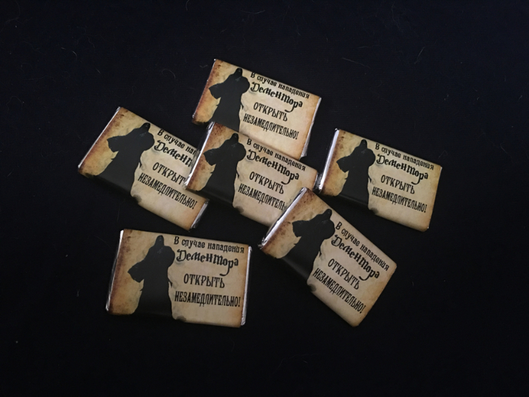 Для сладкого стола, который начнется с лавки сладостей сделала шоколадки - спасительную помощь при встрече с дементором