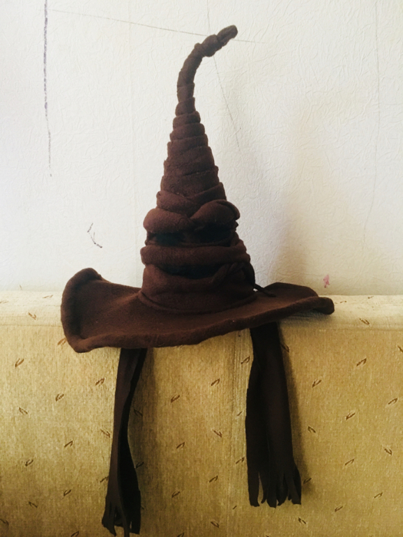 А пока покажу свои приготовления: вчера смастерила из фетра распределяющую шляпу. Горда собой чрезвычайно, шить я совсем не умею, а тут еще носибельно должно быть, чтобы не развалилась пока детей по факультетам будет распределять. Вообще планы были наполеоновские: сделать шляпу и двигующуюся, и говорящую. Помню видела новогодние шляпы-елки которые механически двигались из стороны в сторону под веселую песенку. Хотела купить на сима-ленде, но там были только какие-то припадочные шапки, которые не то что шевелились, а прямо заламывались под немыслимыми углами. Поэтому эту идею пришлось оставить, но вот насчет говорящей буду напрягать мужа чтобы своевременно включал аудиофайлы через колонку по блютусу... Итак, вот моя шляпа, похожа?