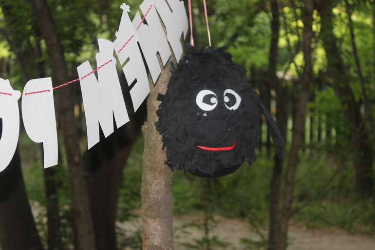 с внешностью этого паука я особо не заморачивалась, все равно дети его разобьют, главное это начинка, у меня были чупа чупсы, конфеты "панда", мармеладные "арбузики " и круглые шоколадные конфетки, не помню их название, наклейки из мультика про Бена и Холли и лизуны из аппарата по 10 рублей 😃 так на заметку,что положить в пиньяту, можно ещё разноцветное конфетти для эффекта, но в этот раз я не стала их класть,чтобы не мусорить ))