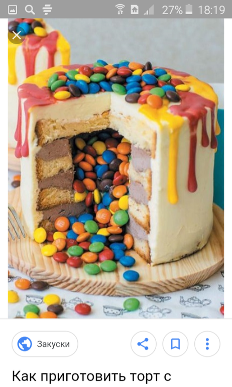 Торт был кстати с сюрпризом, к сожалению вид торта изнутри я не сфоткала, но это было как то так
