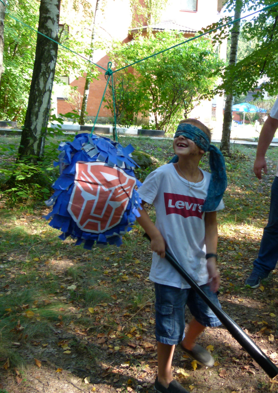 и пиньята. для детей постарще - завязывали глаза , а 4х леткам и так бы попасть