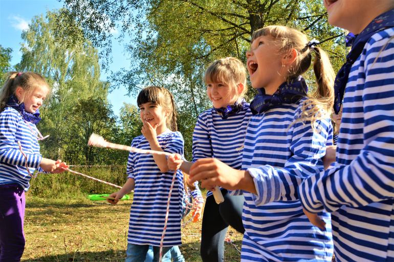 Как настоящим морякам детям было велено научиться вязать узлы и связывать пленных, всем очень понравилось быть связанными)))