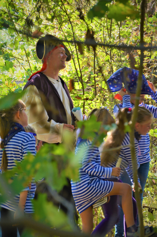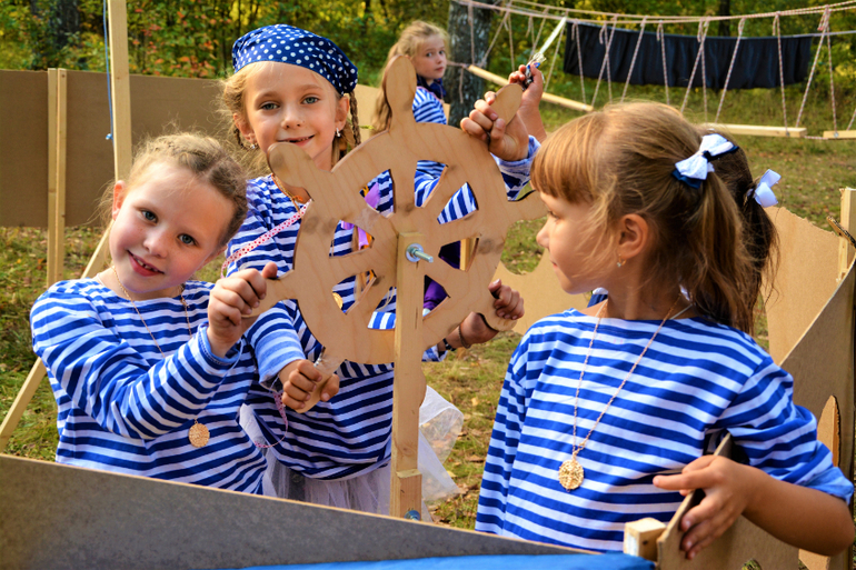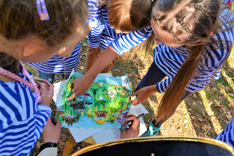 Пока дети рассматривали карту с сокровищами к ним подкрались пираты и украли заветную карту.