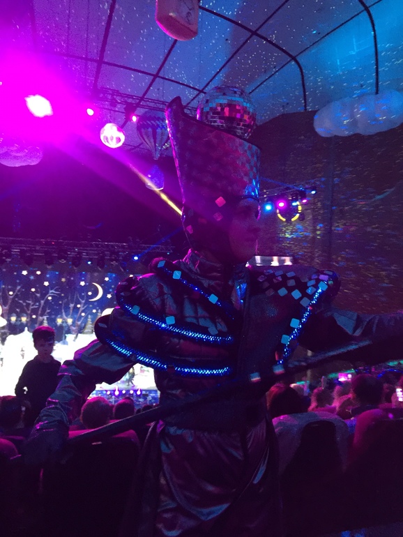 Мы ходим с 2,5 лет. У нас уже традиция, каждый год покупаем билет на елку в Крокус Сити Холл, и берём билеты повыше на балконе или бельэтаже. У них там актеры ходят, и с потолка опускают большие шары, детям очень нравится, каждый хочет дотронуться. Фото с последней елки.