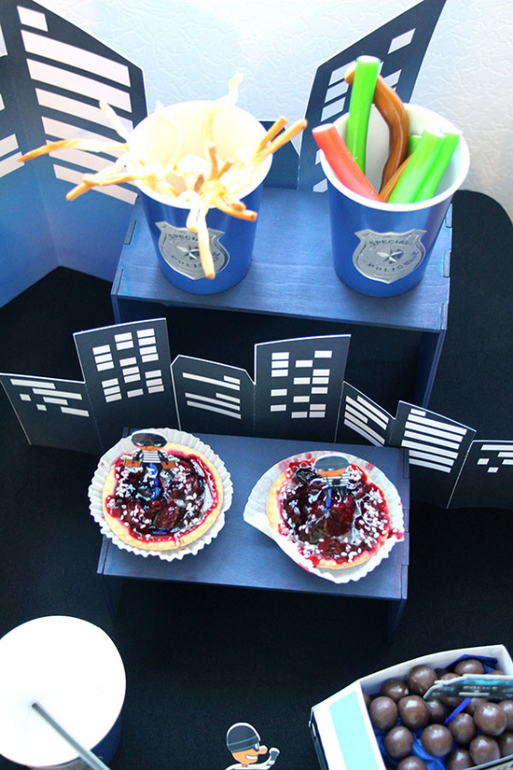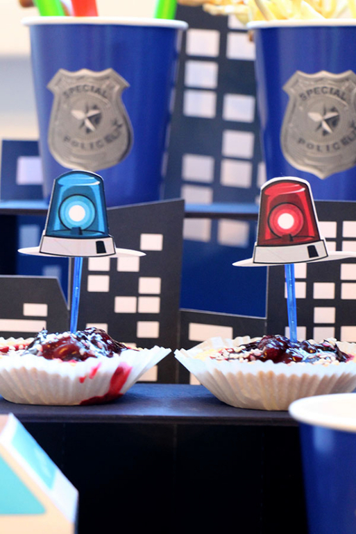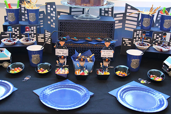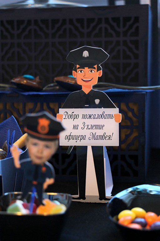 День Рождения Матвея проходил в стиле полицейских! Сын выбрал тему сам. Праздник получился интересным, красочным, веселым и насыщенным в развлечениях! Уже традиционно все оформление и игры я делала сама, обожаю это дело. В этот раз к бумажному оформлению, добавилось и возможность сделать самостоятельно подставки под кэнди бар, а также деревянный топпер.