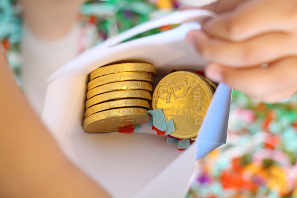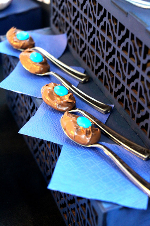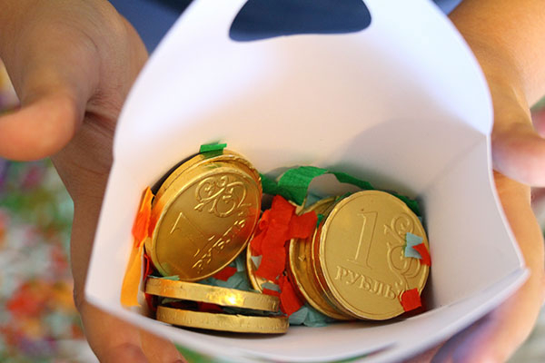 Какое у вас интересное оформление! Столько усилий вы приложили! Скажите, а в чайных ложках шоколадное с конфетой - это что? И где дети сюрпризы достают, это для всех? В коробке?