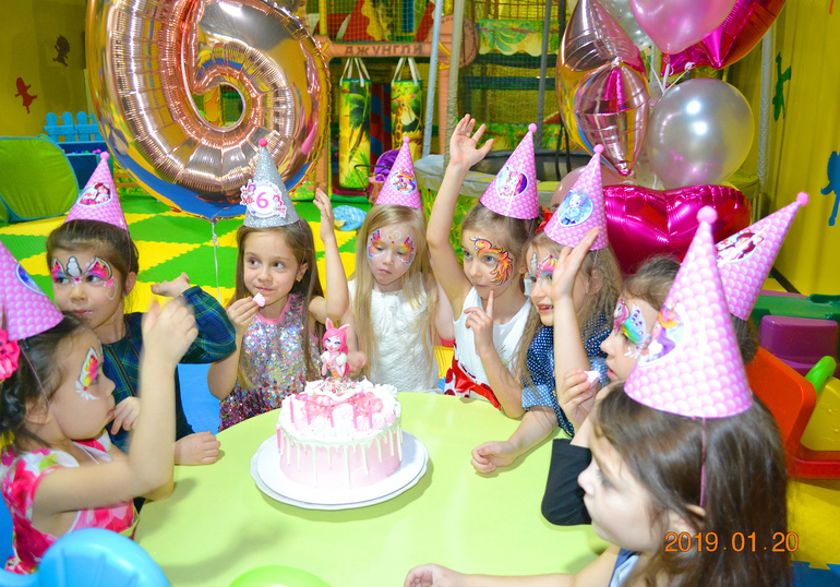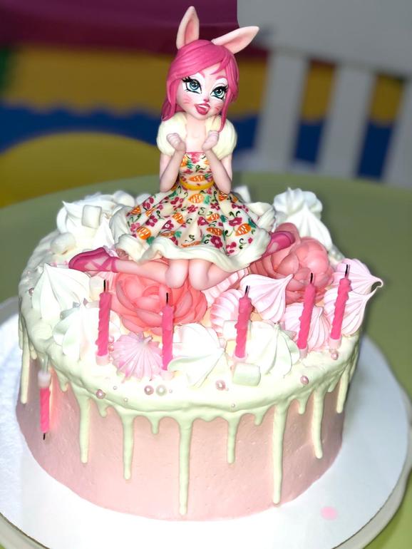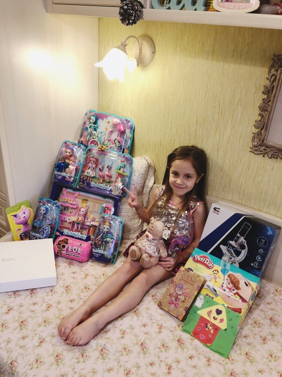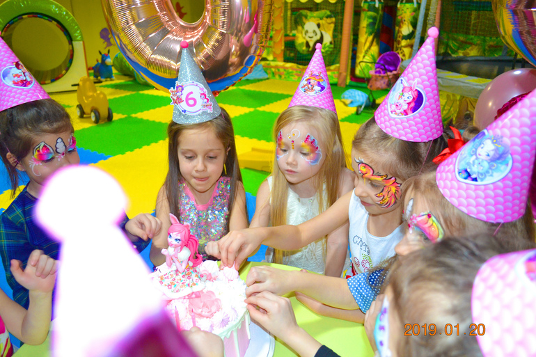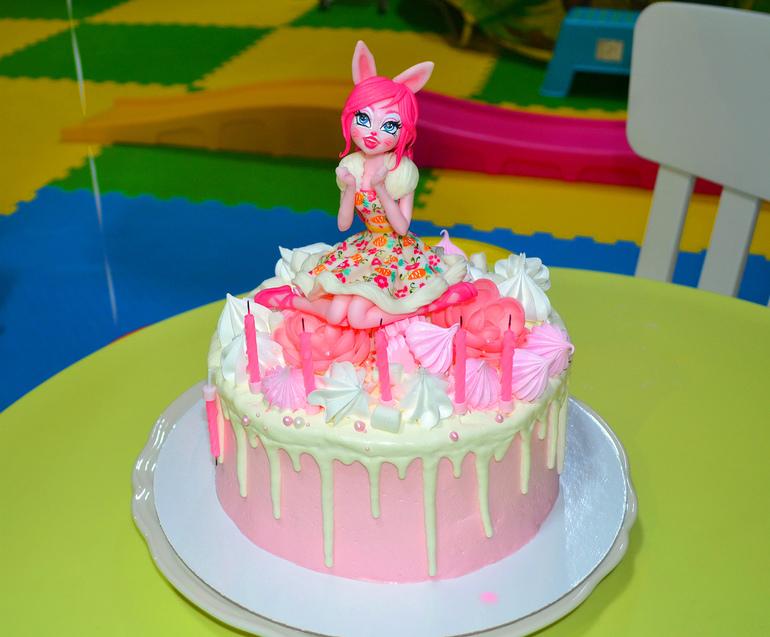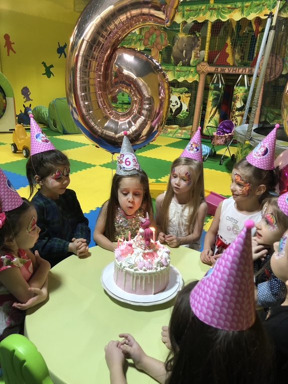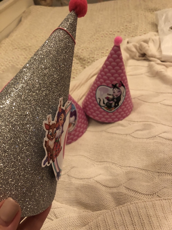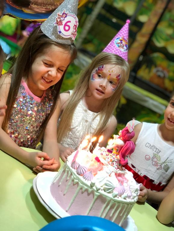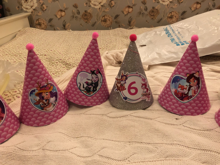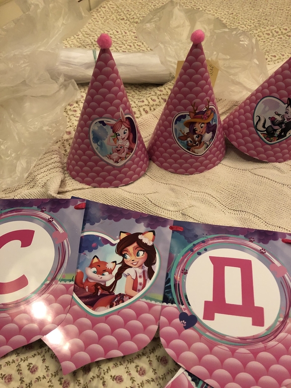 Заказала колпачки и растяжку с Энчантималс и куколку из мастики на торт. В этом году решили отказаться от аниматора, Пригласили фокусника, мыльные пузыри и аквагрим. С подружками отмечала в детской комнате в ТЦ. Выкупили комнату на 4 часа и все были счастливы))