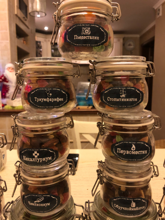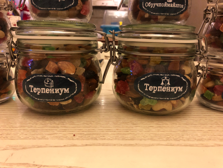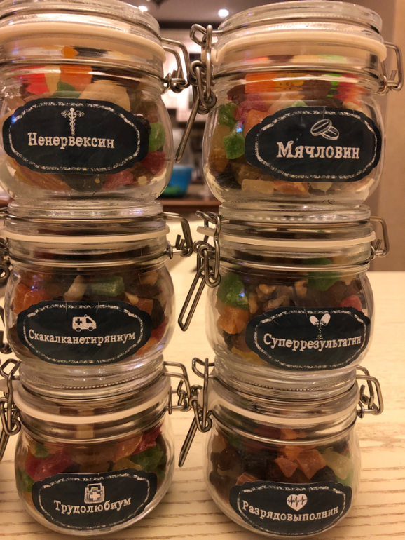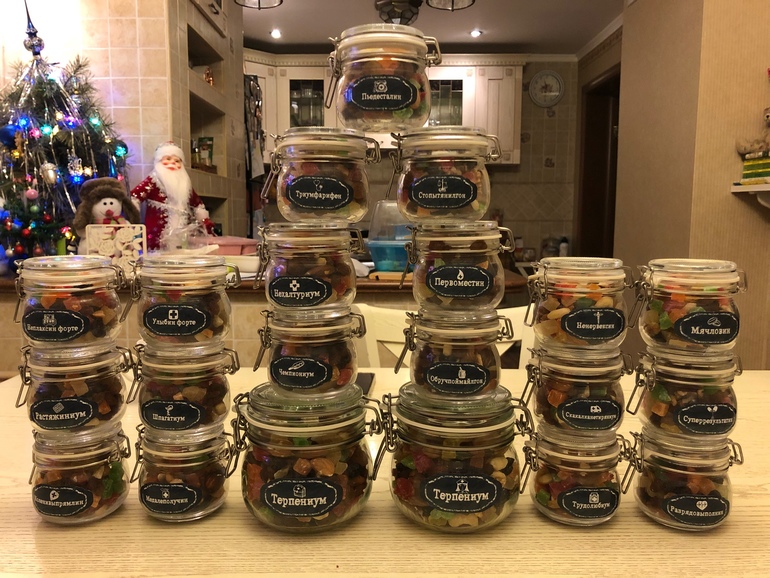 Пришла идея - изюм, орехи, цукаты) Сочиняли всей семьёй) Ну кто Терпениум - понятно)