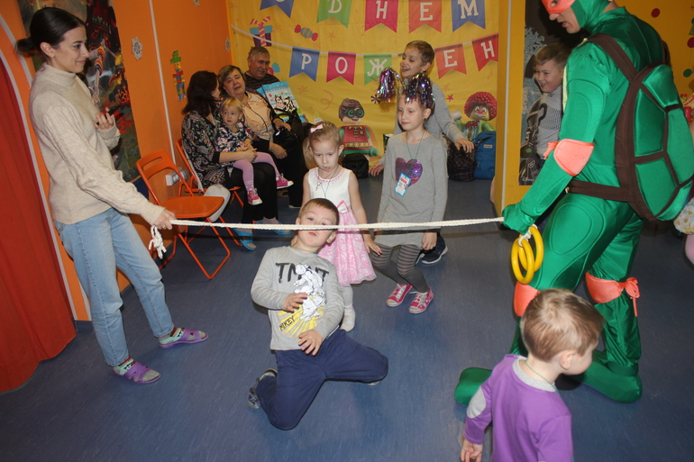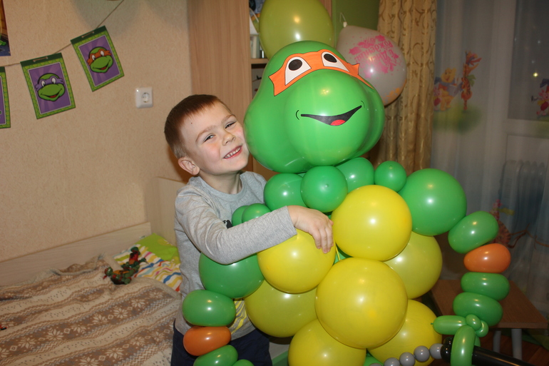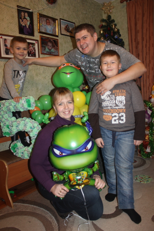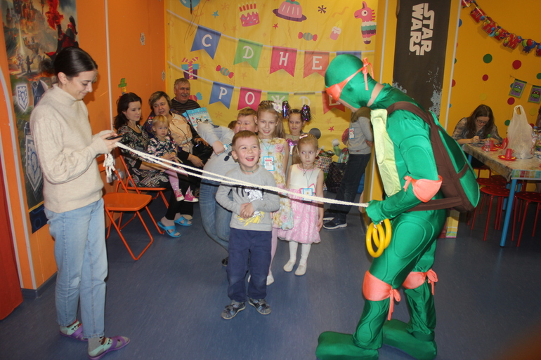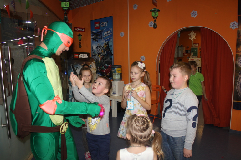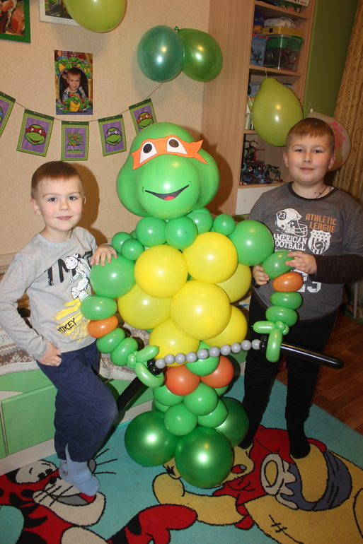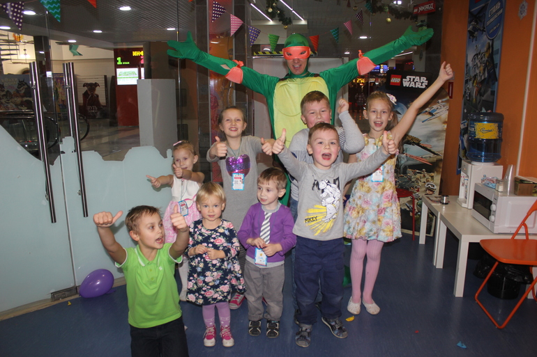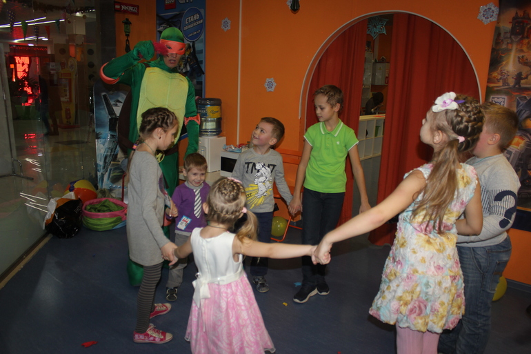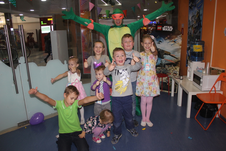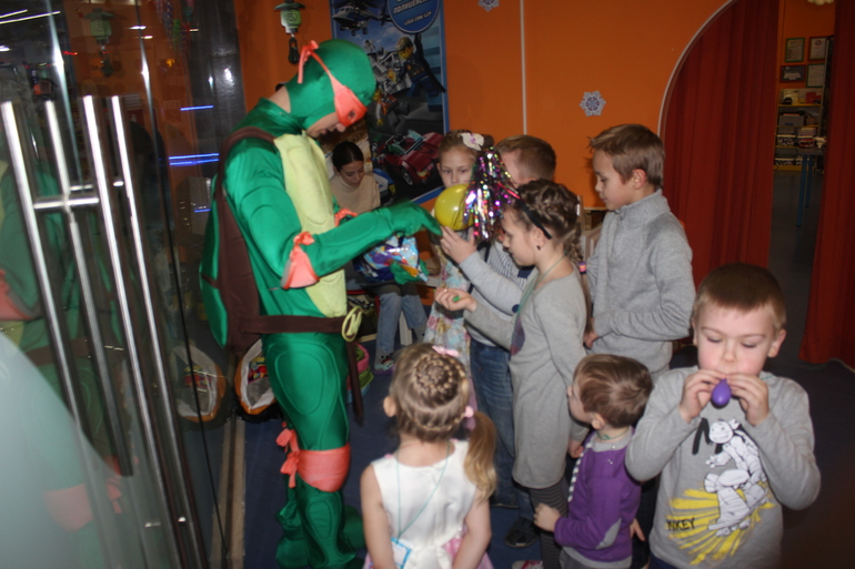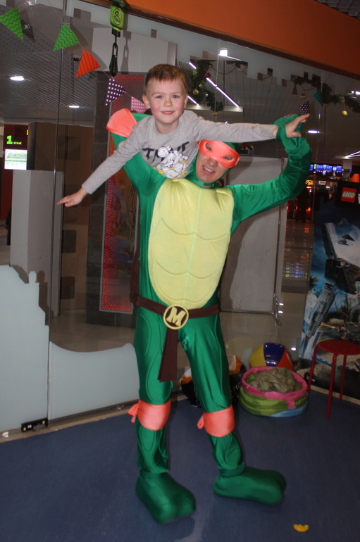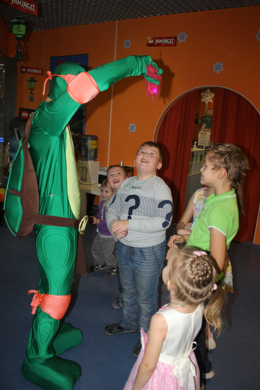 Конкурсы у аниматора были хорошие и вообще отработал он на всю катушку. Дети потом долго не отпускали любимого черепашку.