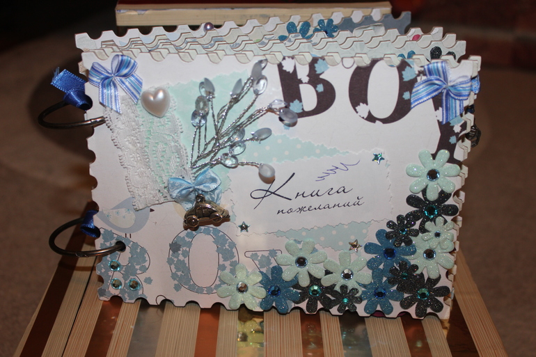 Во время празднования дня рождения все гости заполняли книгу пожеланий для Темки, ее я делала на 1 годик. Теперь там поздравлений стало еще больше.
