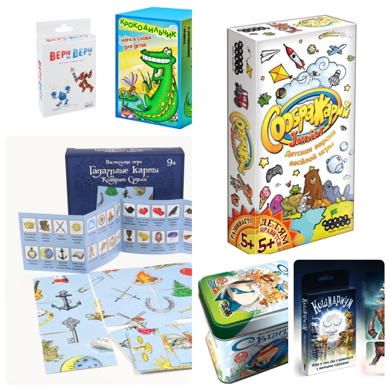 Дети получили настольные игры, они активно играют на переменах и на продленке. Купили игры быстрые и простые в правилах. Соображарий детский, Крокодильчик, Кошмариум, Свинтус, Верю-не верю (роботы) и девочкам карты гадальные "Квадрат судьбы".