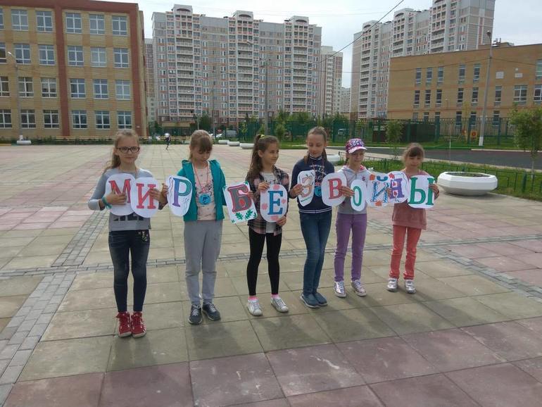 "Мир без войны" - любимая песня, выступали с ней на концерте, поют на уроке английского на английском (припев) и тут решено было, что из букв будет собираться название именно этой песни