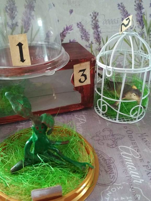 Дракон (скелет), любезно предоставленный профессором Травологии Цветковой))), произвел большое впечатление на сына моего старшего (он приходил тоже - помогал парты вынести и расставить). В клетке №3 никого, там и находился раньше сбежавший питомец (Гиппогриф). Некоторые животные и не имели вроде бы отношения к магическим, но ящерку я представила, как Медной горы Хозяйку, лошади все были говорящими, лев голубой (в одной из книг такой персонаж встречается даже), а слон прозрачный (к тому же он символ одного из факультетов).