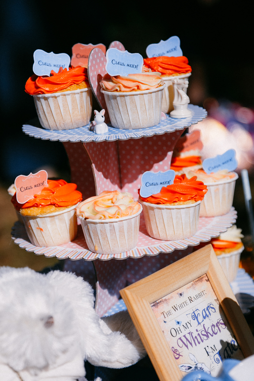 "Съешь меня!"-кексы и "Выпей меня!"-бутылочки сока - это уже классика.