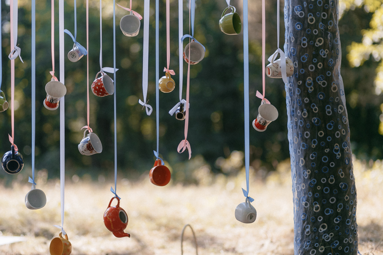 И еще из темы чашек и чайников сложился прекрасный декор-фотофон. Просто подвесить на ленточки - и красота готова!