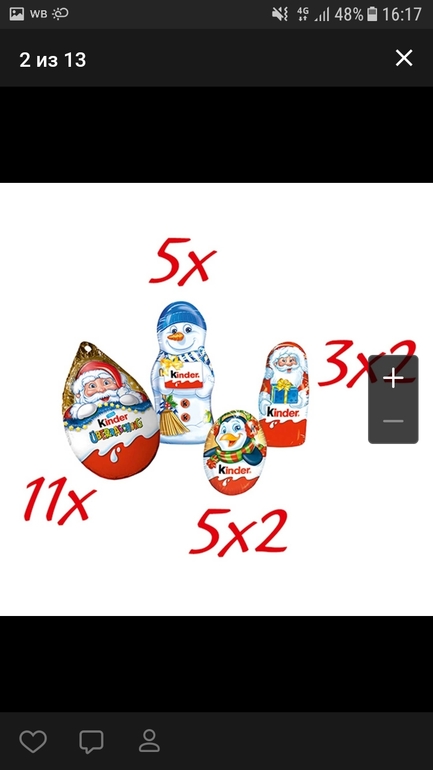 Там только фигурки одиночные и яйца, а а вот остальные по две. ( смртрела видео распаковки).В принципе фигурку и яйца можно на двоих разделить . Девочка в контакте закупает, вообще они германские, там 24 числа и 2019 год, тк у них Рождество 24 дек 2019