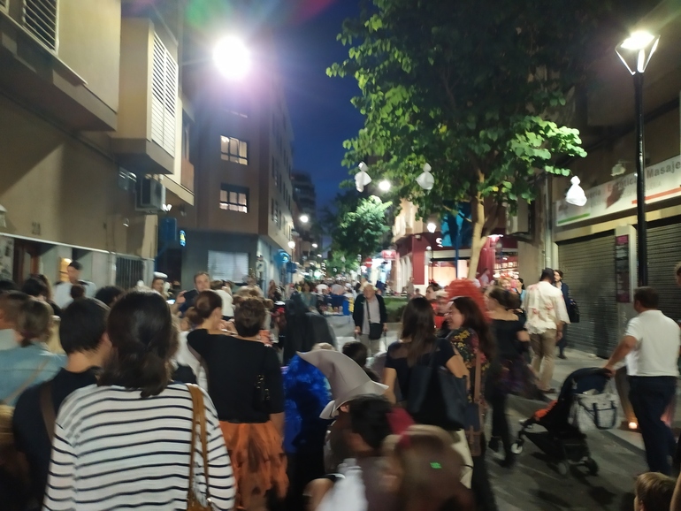 Дошли колонной до пешеходной улицы, и началось веселье. Толпы людей в разных костюмах, музыка, смех.