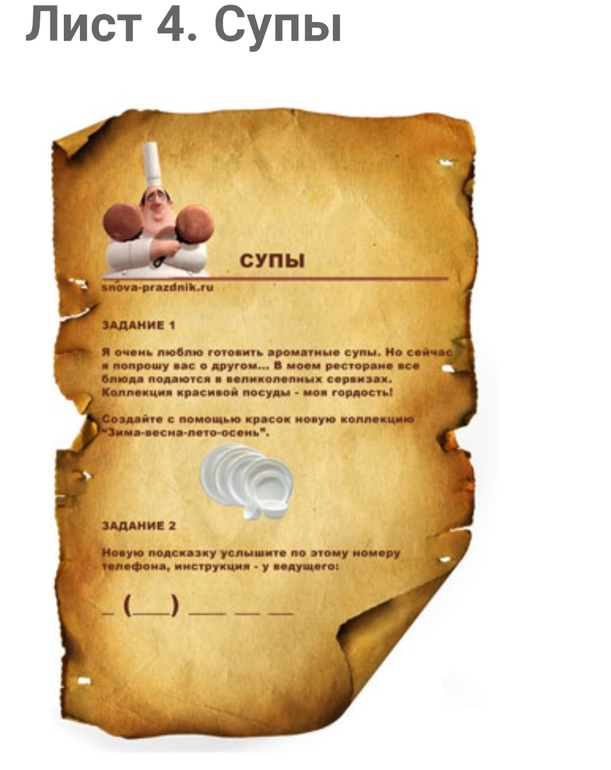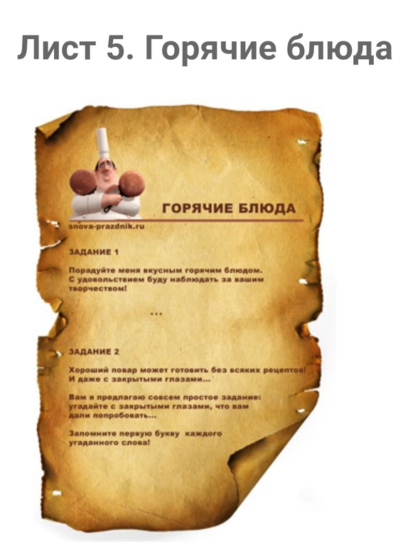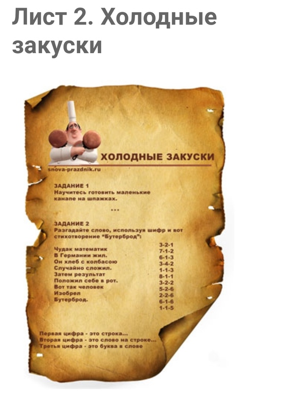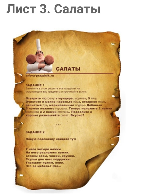 Второе задание - загадан стол. На столе в дальней комнате я выложила записку с загадкой про кулинарную книгу. В одну из таких книг на полке я вложила следующий листок: