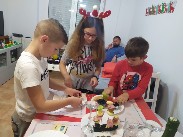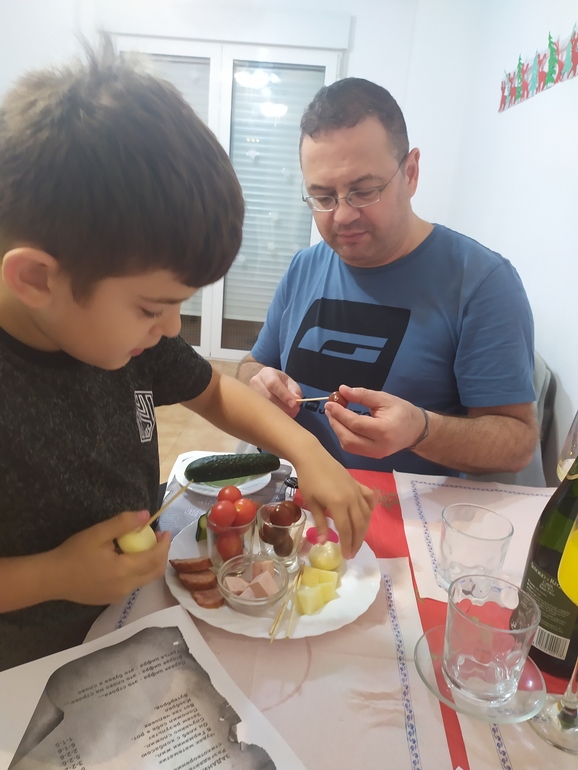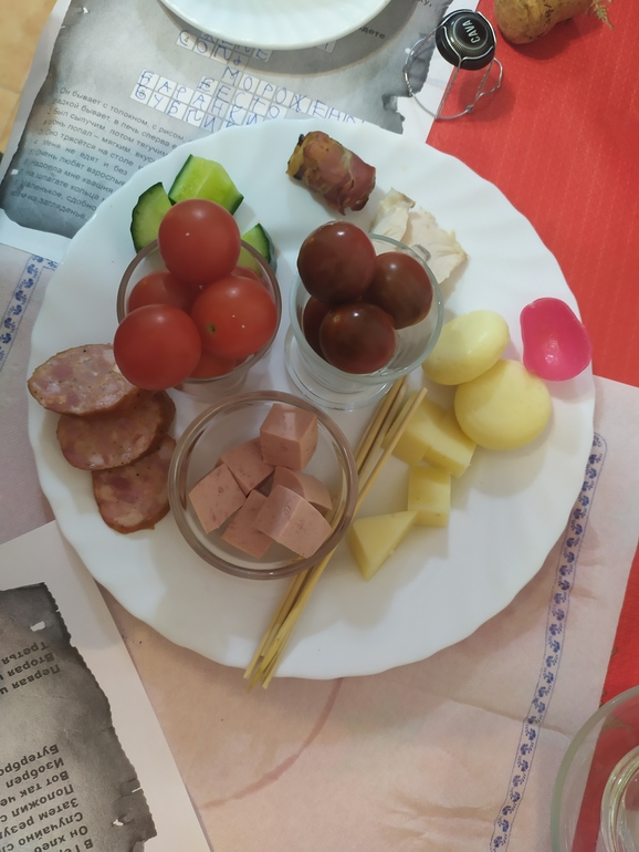 Делали оба раза канапе. Я заготовила ингридиенты: